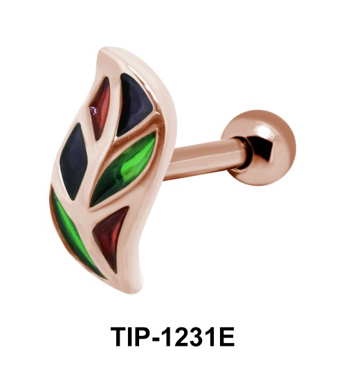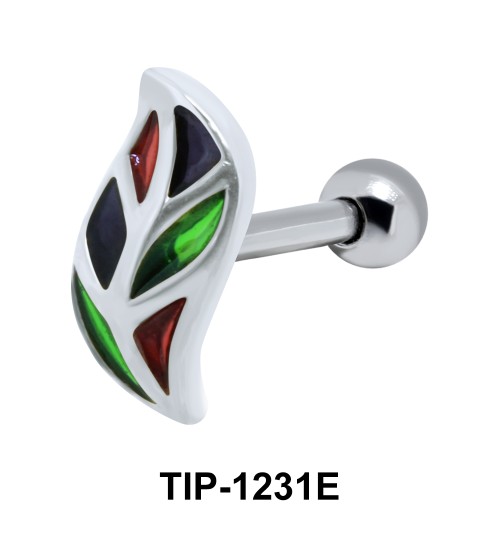 Attractive leaf shaped helix ear piercing is available with different colorful enamels. The ear piercing weighs 1.2 mm. with 3 mm. balls and 6 mm. bar.