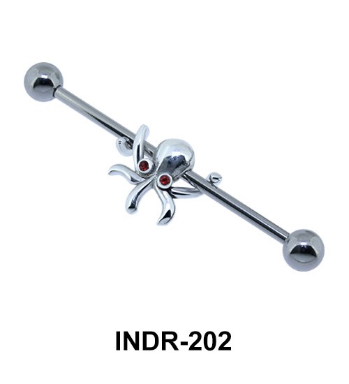 Distinctive octopus shaped brass silver plated ear piercing comes with rhinestones of various colors. The helix brass ear piercing is 1.6 mm. thickness with 36 mm. bar and 5 mm. balls.
