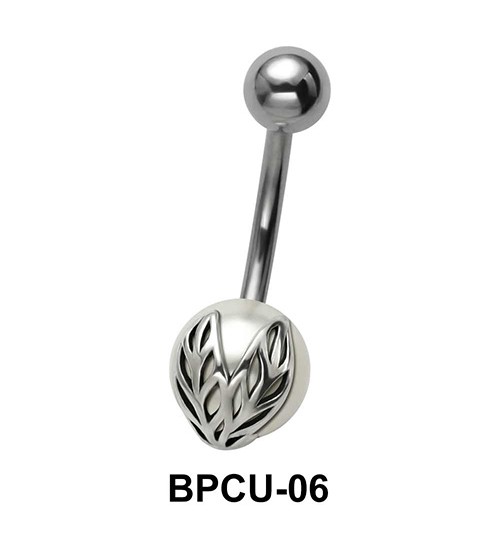 This awesome belly pearl with two long leaves motif is made of Surgical stainless steel. The big pearl set in can be available in white shades.
