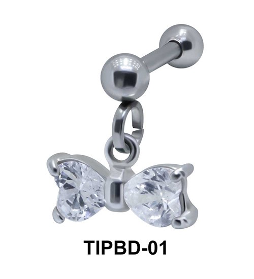 Cute bow shaped ear piercing can be obtained with rhinestones of colors jet, sapphire, aquamarine, peridot, aurore boreale, light siam, rose and crystal. The ear piercing is 1.2 mm. thickness with 6 mm. bar and 3 mm. ball.