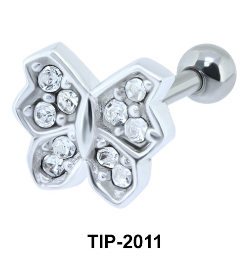 The butterfly shaped helix ear line set with stones glitters breathtakingly.