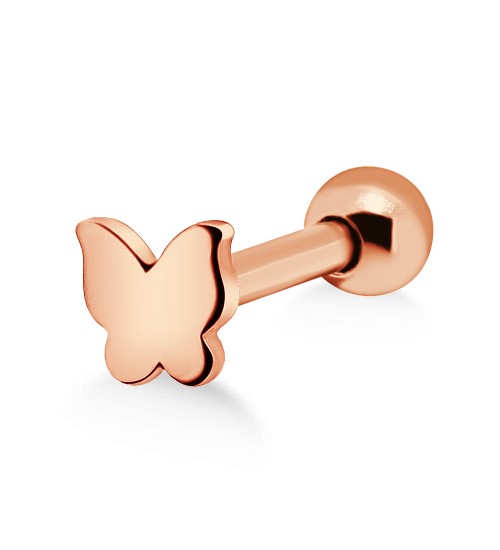 The silver upper ear piercing in the shape of butterfly looks classic.