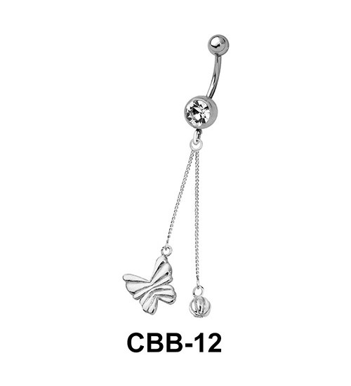 Awe-inspiring butterfly with chain shaped belly piercing comes with rhinestone that can be sapphire, jet, rose, aquamarine, crystal, peridot and light siam in color. The belly piercing is 1.6 mm. thickness with 10 mm. bar and 5 mm. balls.