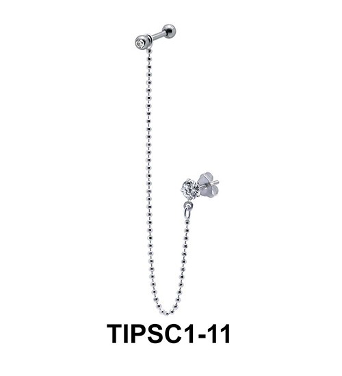 chain shaped ear piercing with stud chain appears sleek and stylish.