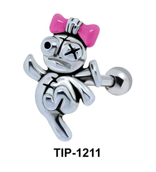 Admirable dancing doll shaped brass silver plated ear piercing is available in different colors on the doll. The nickel free brass helix ear piercing is 1.2 mm. thickness with 6 mm. long bar and 3 mm. balls fitting snugly on the cartilage.