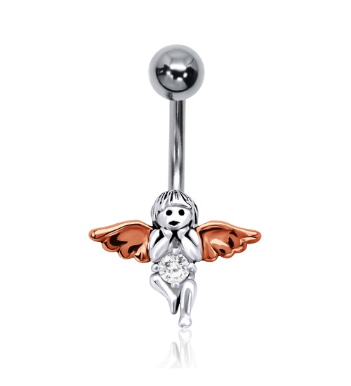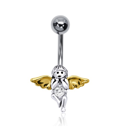 Ethereal elf shaped belly piercing comes with rhinestone of colors peridot, aquamarine, sapphire, rose, crystal, aurore boreale, light siam, jet. The steel belly piercing is 1.6 mm. thickness with 10 mm. bar and 5 mm. ball.
