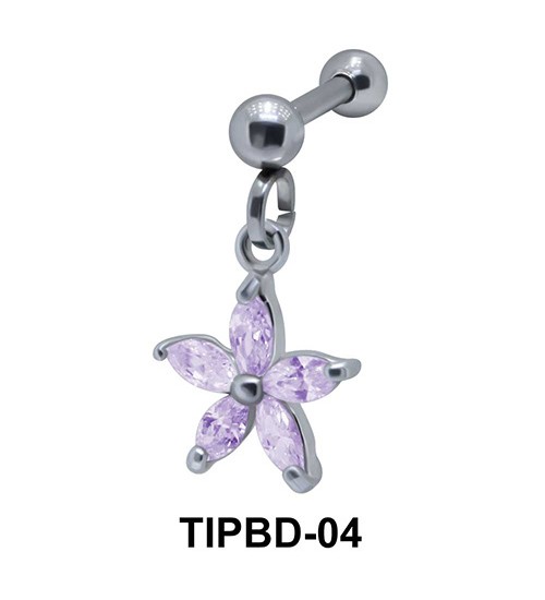 Lovely flower shaped ear piercing is 1.2 mm. thickness with a bar of 6 mm. length and a 3 mm. ball. It has CZs of colors amethyst, red, lavender, black, olivine, pink, crystal, yellow.