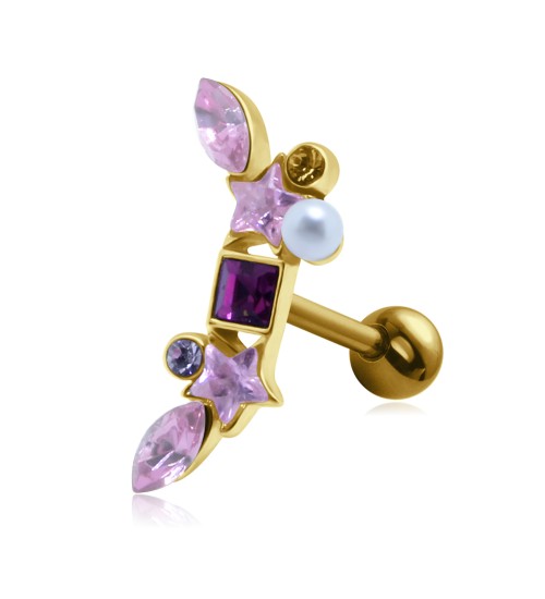 Stone Set Flower Shaped Helix Piercing TIP-687