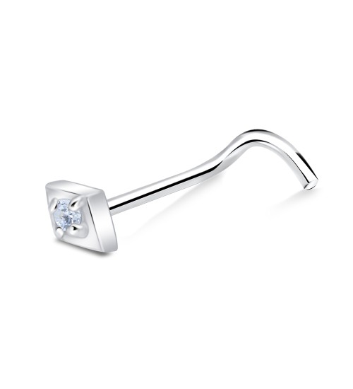 Stone Ring Shaped Silver Curved Nose Stud NSKB-446