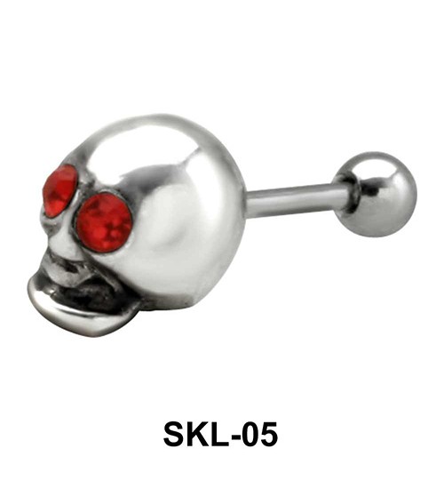 skull shaped helix piercing with red stones inside the socket looks quite intriguing.