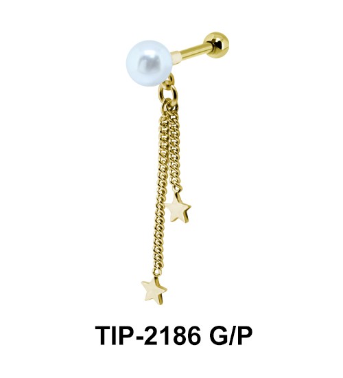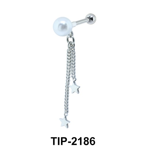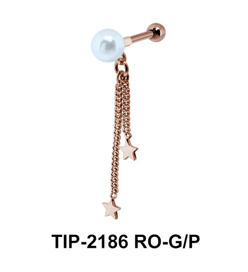 starry chain helix ear piercing hanging from the pearl looks modern.
