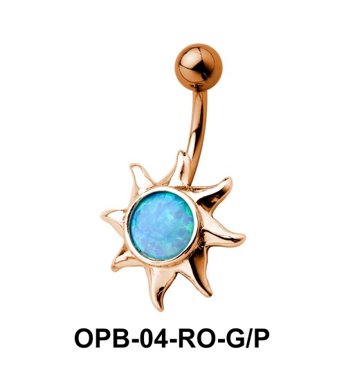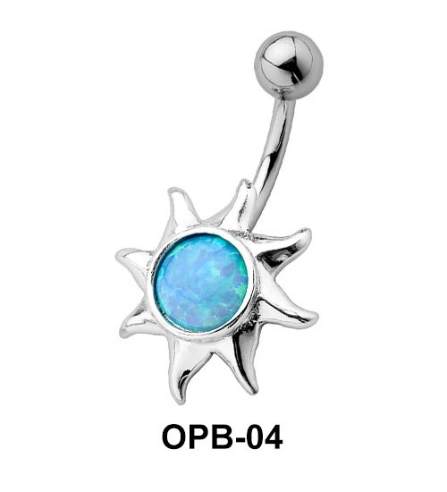 encrusted sunrays belly piercing with an opal appears magnetic.