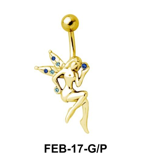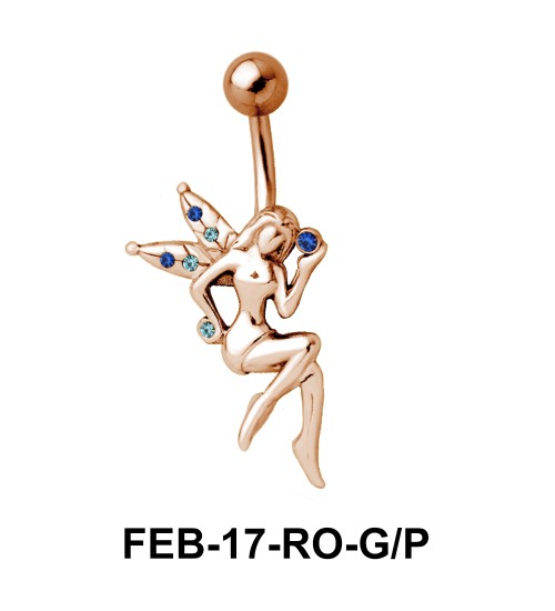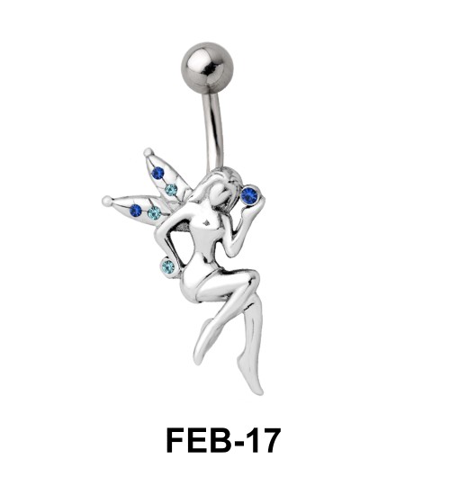 set fairy belly piercing in blue stones on the wings appears enamoring.