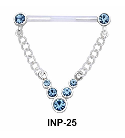 Silver V Shape Invisible Nipple Piercing 1.6 mm.(14 GA) with Crystal Chain with PTFE Tube
